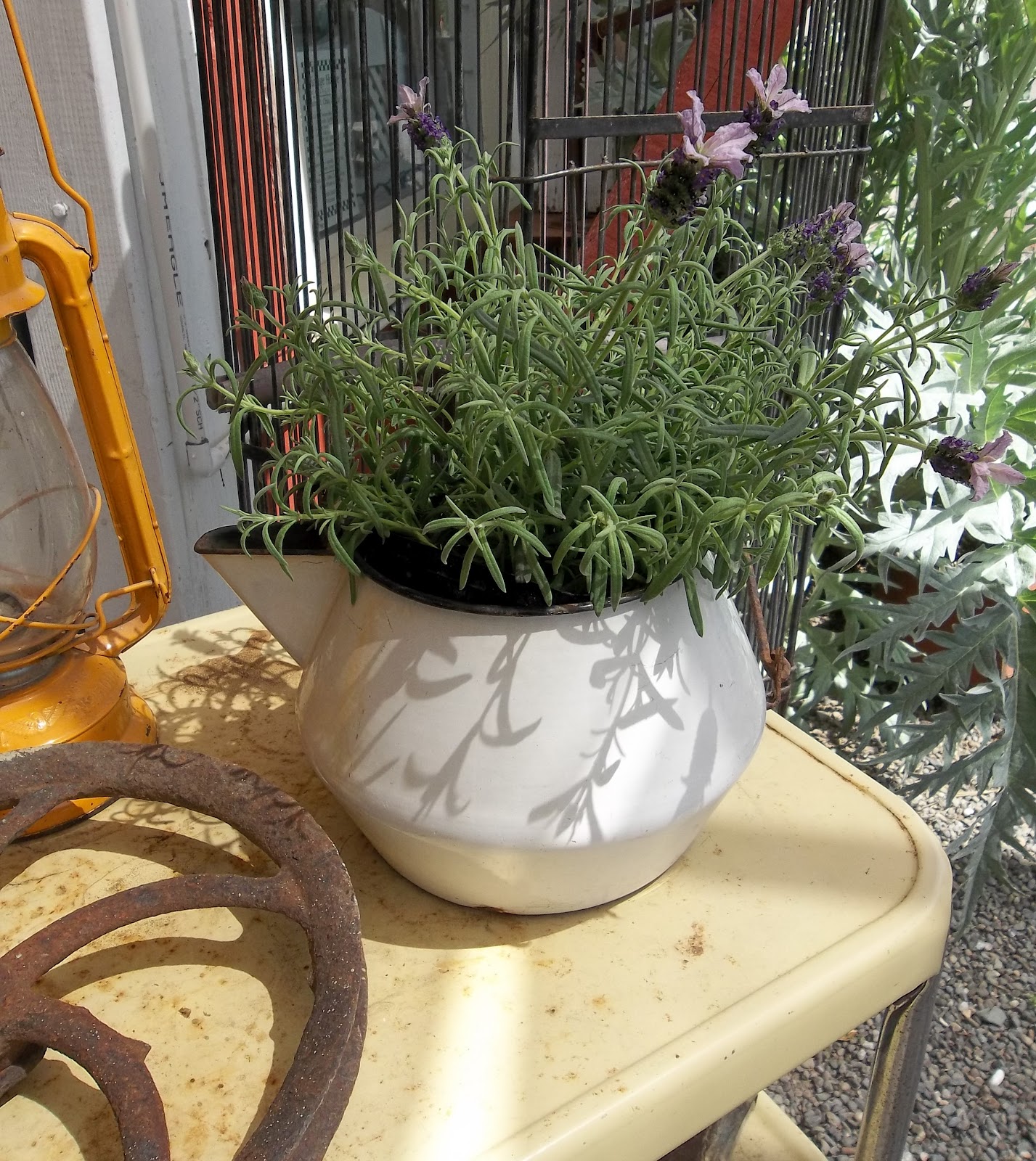 FRAGRANT LAVENDER IN AN ENAMELED TEAPOT